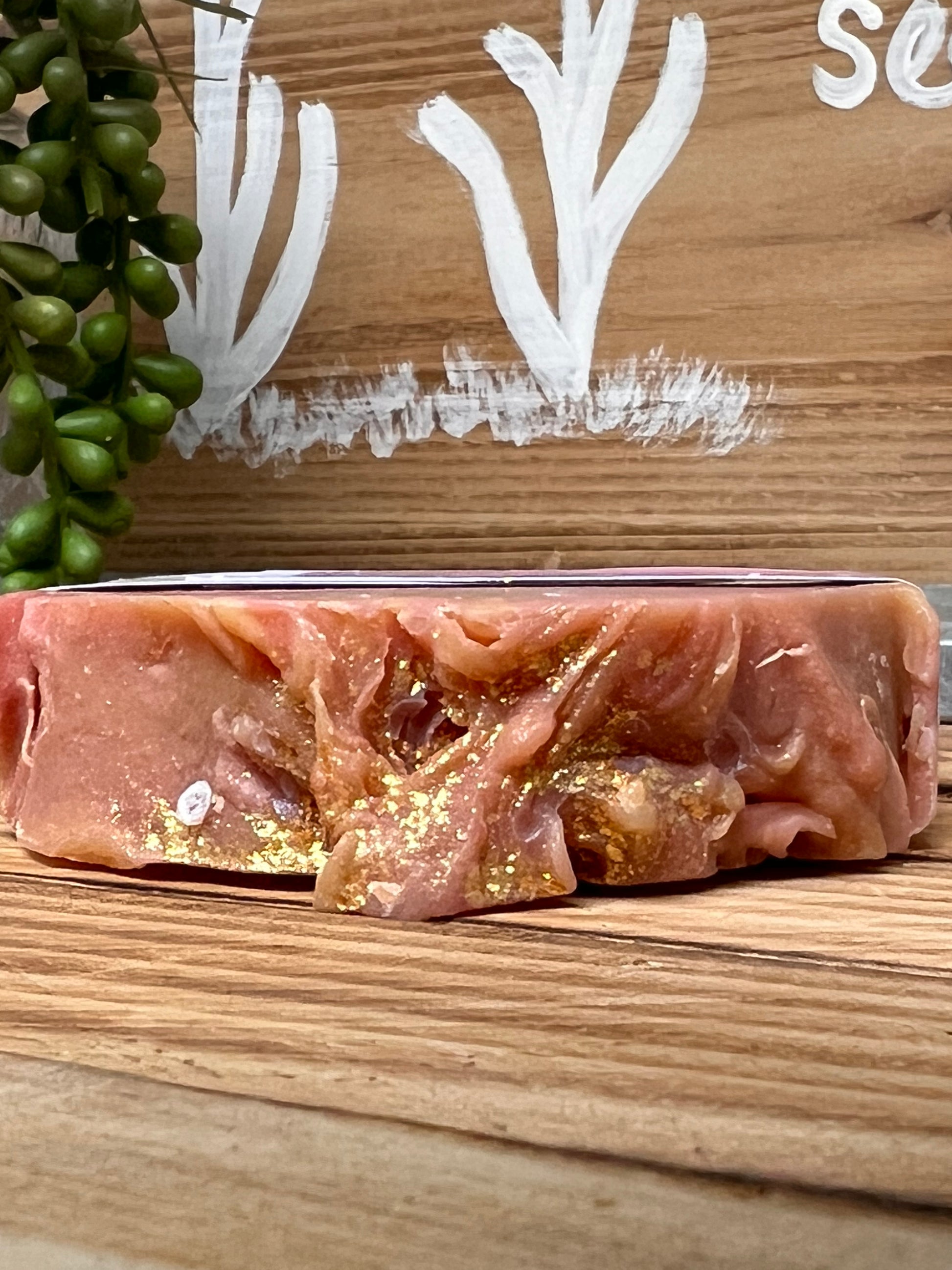 Made with: Coconut milk, olive oil, palm oil, coconut oil, shea butter, almond oil, castor oil, kaolin glay, ground oats, sodium lactate, sodium hydroxide, organic cane sugar, fragrance oil